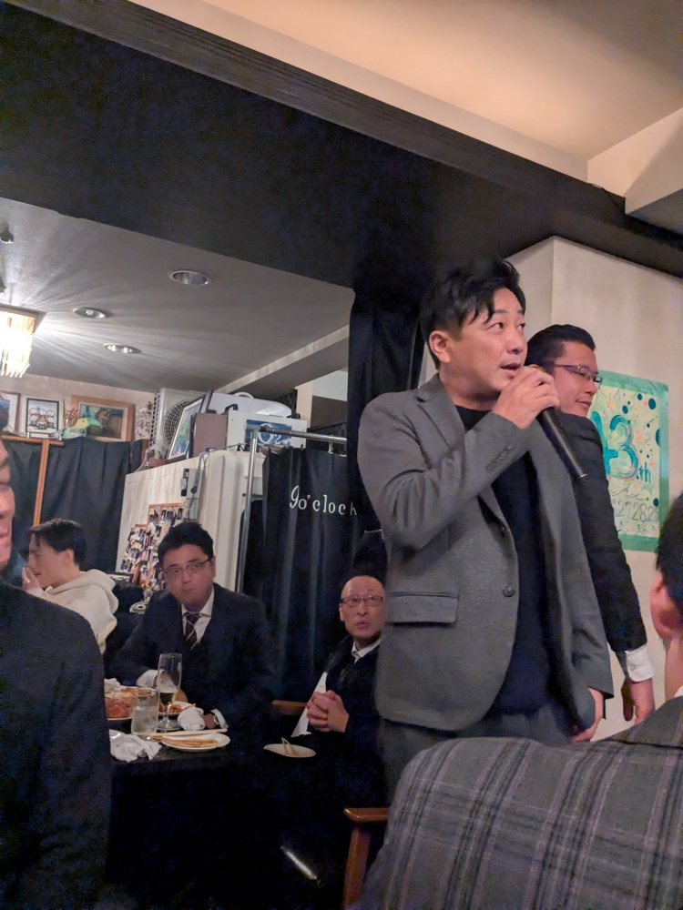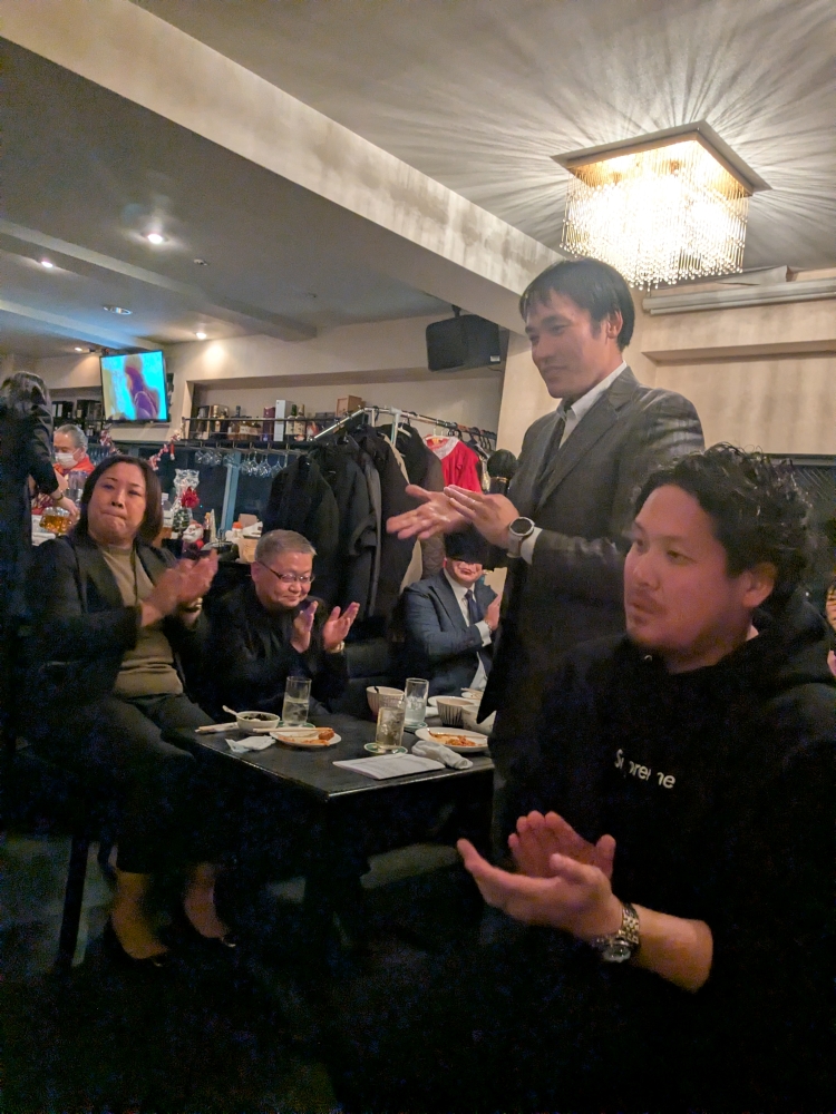 19時からの忘年会では、新会員の方からご挨拶をいただき、その場で入会表明もされるという嬉しい出来事がありました。
