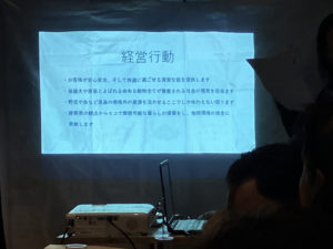 実践塾も終了され、サポーターの人らも昼食会での報告に応援に来られていました。経営理念にも、動物愛護の精神が表れていて、さすがと思わせますね。